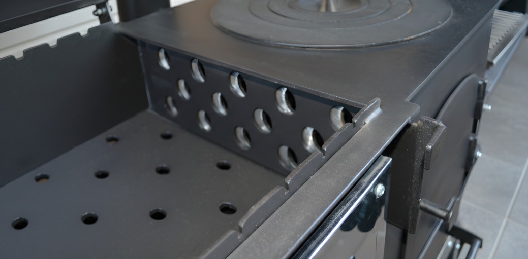 Регулировка интенсивности горения, возможность использования половины площади жаровни для прожарки и томления.